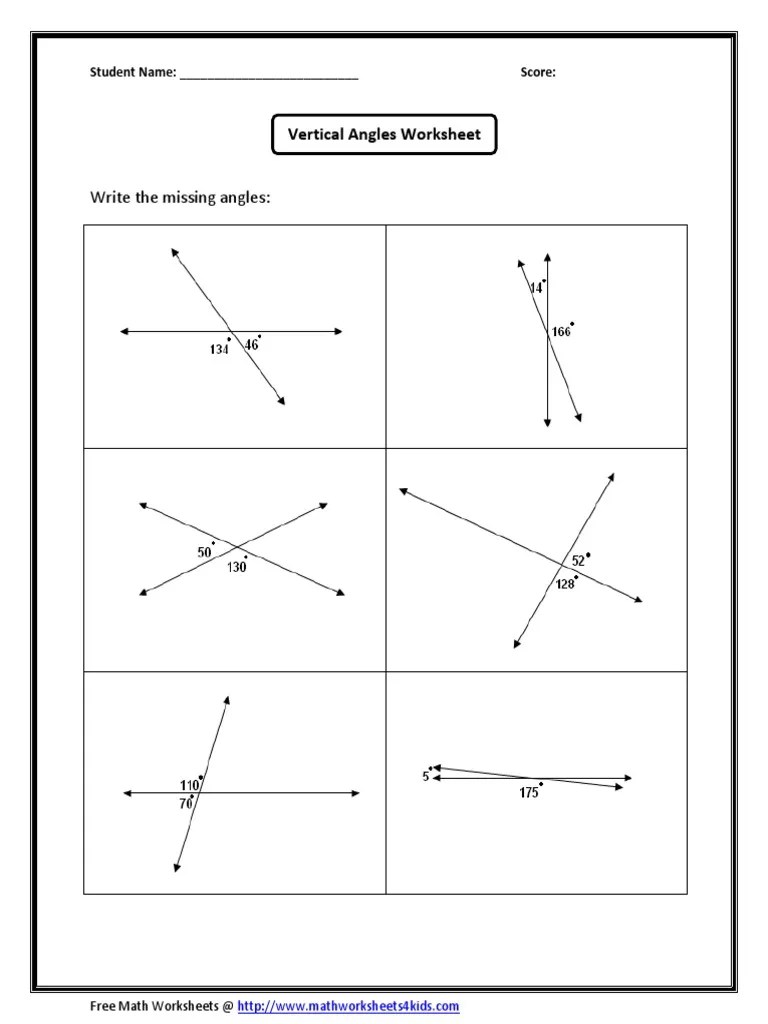 Vertical angles are congruent angles, meaning they have the same measure vertical angles worksheet. Vertical angles are congruent angles, meaning they have the same measure.